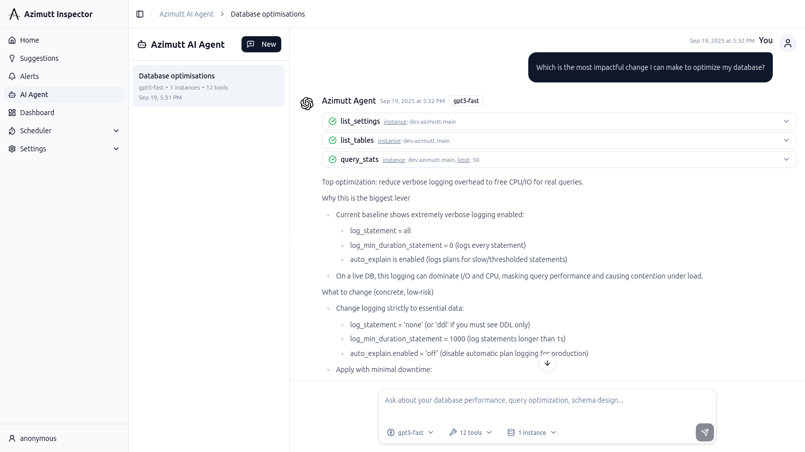 Azimutt Inspector combines community knowledge with clients experience to build the first database analysis platform integrating AI with deep expertise.